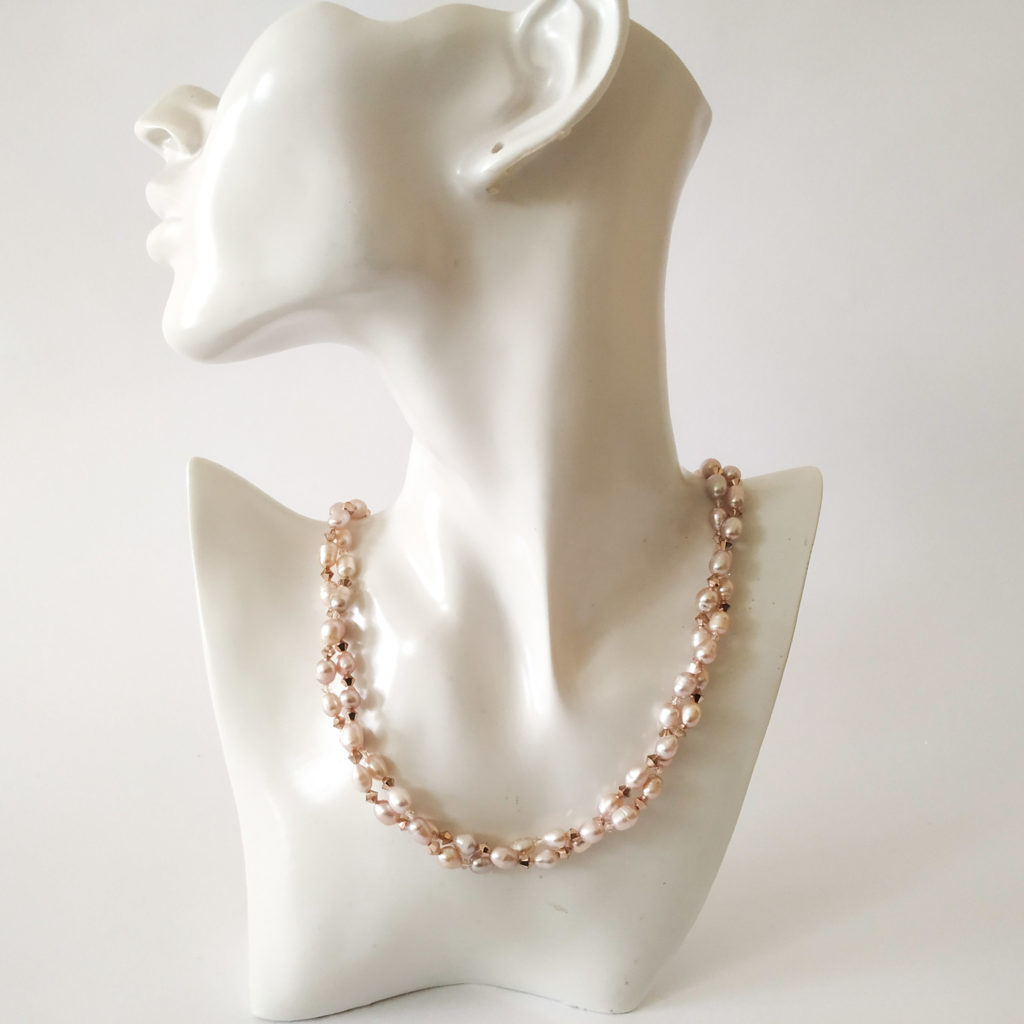 Collana intrecciata realizzata a mano con perle vere naturali di acqua dolce. Elegante e raffinata, adatta a un abito per occasioni speciali.