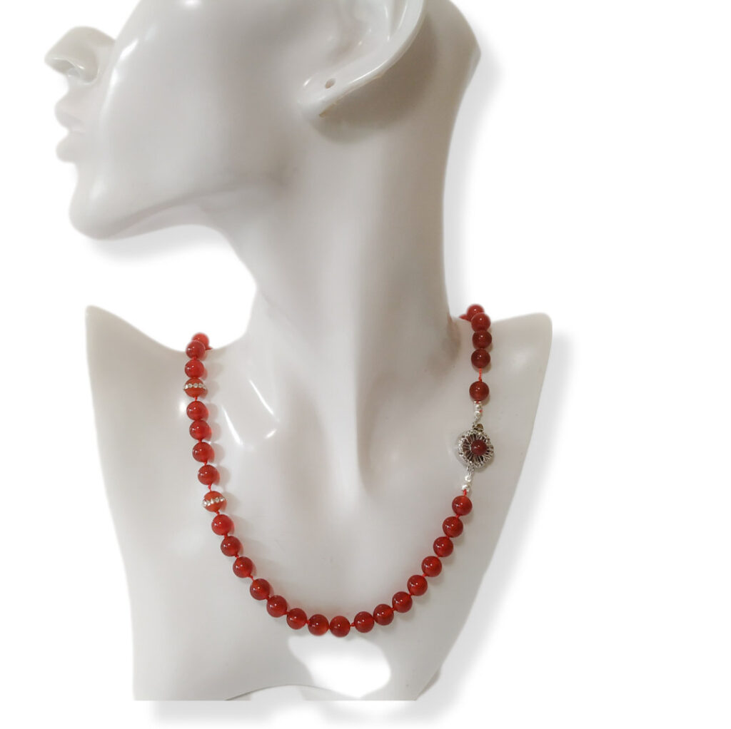 Collana rossa di pietre dure di agata, girocollo donna argento 925